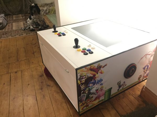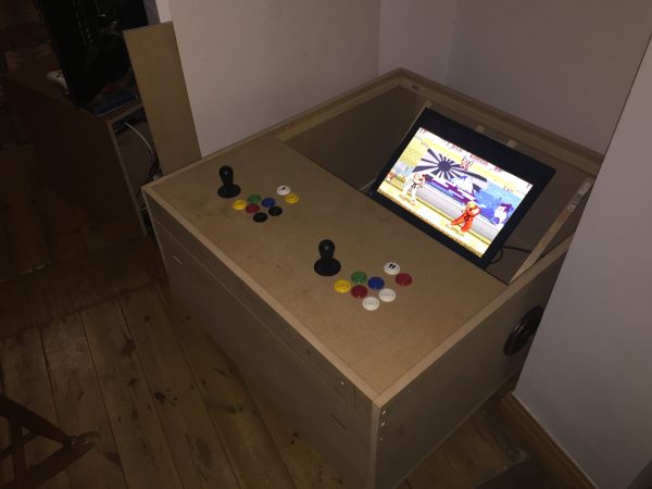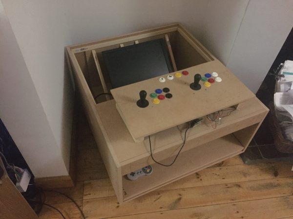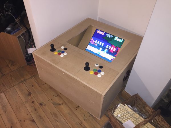 The Arcade Coffee Table, hardware wise, is powered by a Raspberry Pi3. Real nifty little things, I recently used one to build a PiGrrl, which is a Gameboy style emulator. The emulators are powered by a frontend called RetroPie. Absolutely fantastic. If you use their software please think about donating. Setup is very easy and even beginners can do it. In fact this was a project that I didn’t use any soldering. Audio is handled via a usb SoundCard I got for the Pi, running to a mini-Amplifier off Amazon and some car speakers I got from Halfords. When one has to busy themselves with the dangerous task of nearly chopping one’s dick off with a power saw, it’s refreshing to not have to spend one’s evenings swearing at the soldering iron too.