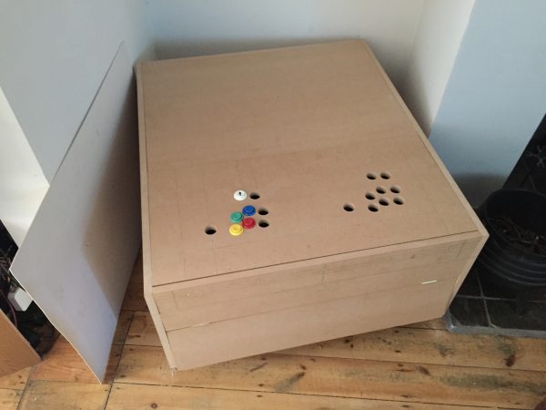 I designed the central console to be removable from the rest of the arcade coffee table. The idea here is so it can literally be used as a table. There is a spare, unpainted lid in the front drawer.I thought is would also be useful in making sure potential crime don’t know it’s an arcade machine if people came to burgle me. Rule one: Crime never takes a holiday. So it’s easier to hide with no joysticks poking out.