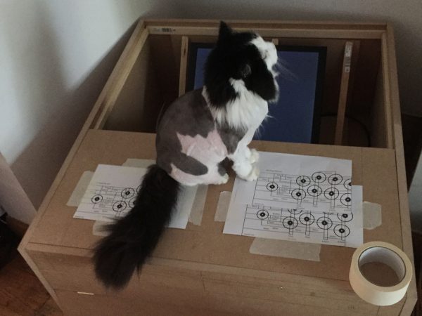 This turned out to be a great solution, there was a trade off that became more evident during build but more on that later. The prototype stand I made ended being the part I used inside the finished arcade coffee table. As mentioned earlier, I’m not particularly good at carpentry. So once I’ve built it and it works; it stays in. The finished result works well, although to ensure good view for the user, I had to create a corresponding diagonal on the opposite. Painting the entire interior area matte black ensured minimal glare on the glass from any reflecting light. This creates a nice seamless black square effect for the viewing window when the device is off as well.